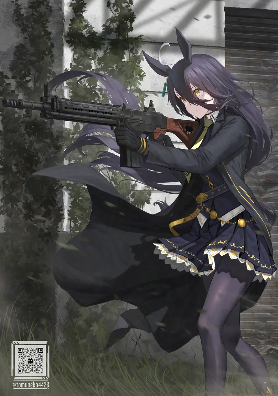 1girlahogeaiminganimal_earsbattle_rifleblack_coatblack_glovesblack_hairblack_pantyhoseblack_skirtclosed_mouthcoatfeet_out_of_frameglovesgrassgunhair_between_eyesholdingholding_gunholding_weaponhorse_earshorse_girlhorse_tailhowa_type_64long_hairlong_sleevesmulticolored_hairnecktieoutdoorspantyhoseplantpleated_skirtqr_coderiflesecurity_shutterskirtsolotailtwitter_usernamevery_long_hairvinesweaponwhite_hairyellow_eyesyellow_necktie