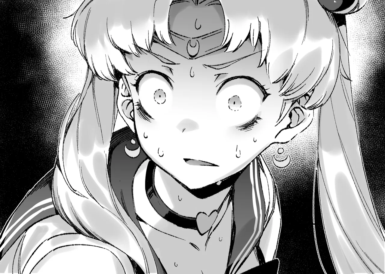 1girlbags_under_eyesblushchokercollarboneconstricted_pupilscrescentcrescent_earringsdiademearringsgreyscalehair_bunhair_over_shoulderheartheart_chokerjewelrylong_hairlooking_to_the_sidemagical_girlmememonochromesailor_collarsailor_moon_redraw_challenge_(meme)sailor_senshi_uniformscaredsingle_hair_bunsolosweattwintailsupper_bodywide-eyed