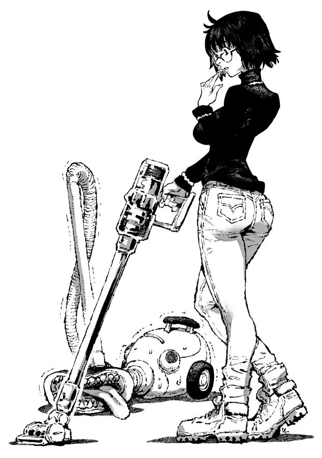 1girlarms_at_sidesassblack_sweaterbreastsdenimfrom_sideglassesgreyscalehand_to_own_mouthholdingjeanslarge_breastslong_sleevesmonochromeopen_mouthpantspocketshoessweatertremblingturtleneckvacuum_cleaner