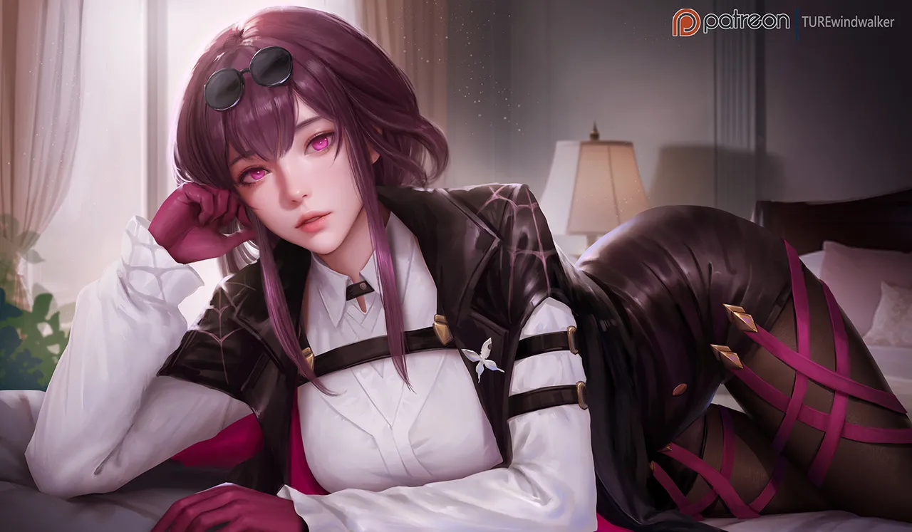 1girlartist_nameblack_jacketblushbreastseyewear_on_headgloveshigh-waist_shortsjacketlarge_breastslipslong_hairlong_sleeveslooking_at_viewerpantyhosepantyhose_under_shortsparted_lipspatreon_logopatreon_usernamepurple_eyespurple_glovespurple_hairred_lipsround_eyewearshirtshortssolosunglasseswhite_shirt