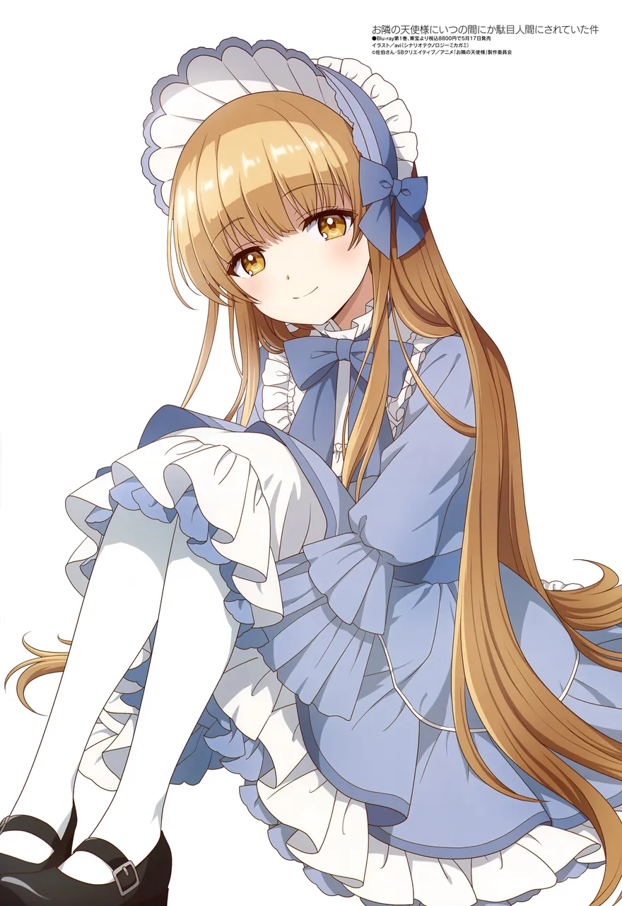 1girlanime_coloringblonde_hairblue_dressblue_hairbandblue_ribboncopyright_namecopyright_noticedresshairbandhugging_own_legslolita_fashionlolita_hairbandlong_hairlooking_at_viewermary_janesribbonshoessimple_backgroundsockssolovery_long_hairwhite_backgroundwhite_socksyellow_eyes