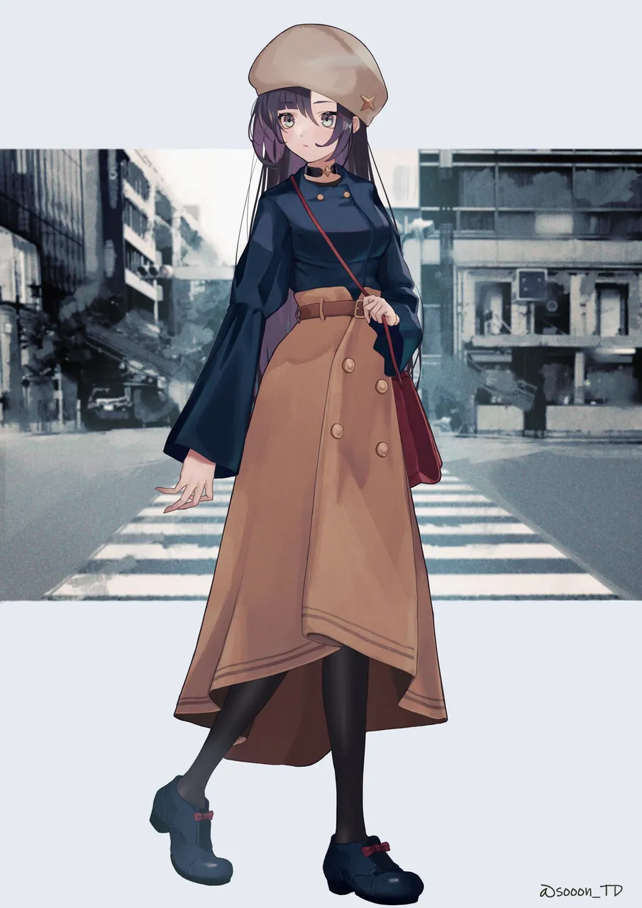 1girlalternate_costumealternate_hairstyleasymmetrical_bangsbagbeltbelt_buckleblack_chokerblack_pantyhoseblue_shirtblue_shoesblushbreastsbrown_hatbrown_skirtbucklebuildingcasualchokerclosed_mouthcontemporarycrosswalkdayfull_bodygreen_eyeshair_downhandbaghathigh-waist_skirtlong_skirtlong_sleeveslooking_to_the_sidemedium_breastsoutdoorsoutside_borderpantyhosephoto_backgroundshirtshoesshoulder_bagskirtsolostandingtown